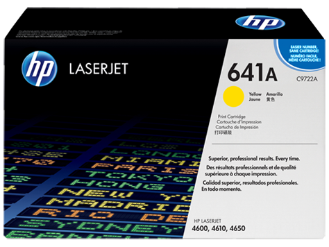Los suministros de impresión HP 641A Yellow ofrecen unos resultados rápidos y de calidad. Con unas funciones de gestión de suministros fiables, de rendimiento uniforme y que ahorran tiempo. Compre suministros originales HP